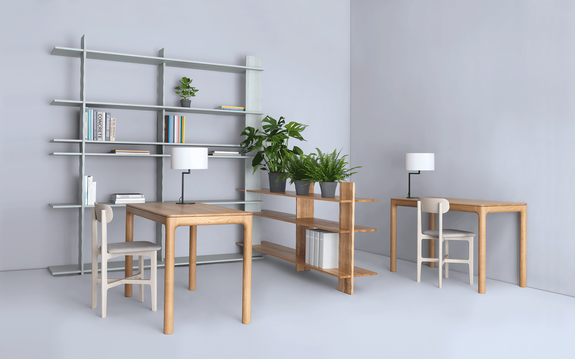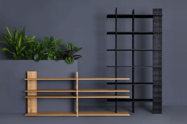 Das 3° REGAL mini kommt gänzlich ohne Schraub- oder Leimverbindung aus. Aus Massivholz gefertigt verjüngen sich die vertikalen Regalseiten rhythmisch um drei Grad. Sie tragen die horizontalen Regalbretter und ermöglichen deren flexible Höheneinteilung. Die Regale können miteinander verbunden werden – über Eck oder in einer Linie.