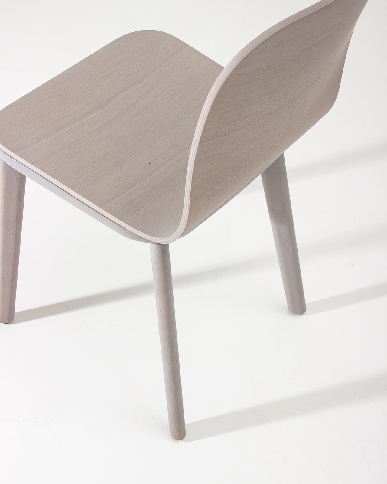 Gestell Massivholz Eiche | Holzsitz Formholz | Farbbeize kaltgrau | matt lackiert