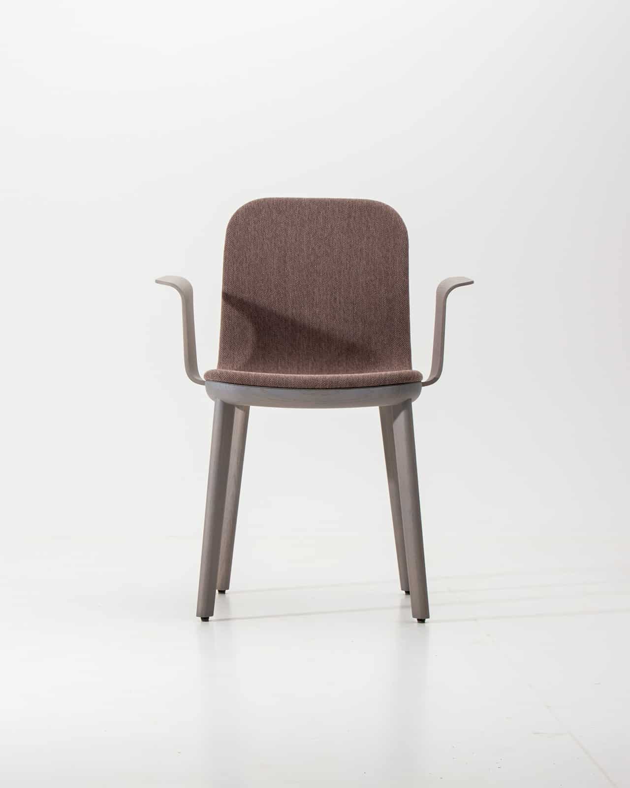 Gestell Massivholz Eiche | Armlehnen Formholz Eiche | Farbbeize kaltgrau | matt lackiert | Sitzschale Formholz Polster Textil Kvadrat Quartet 354