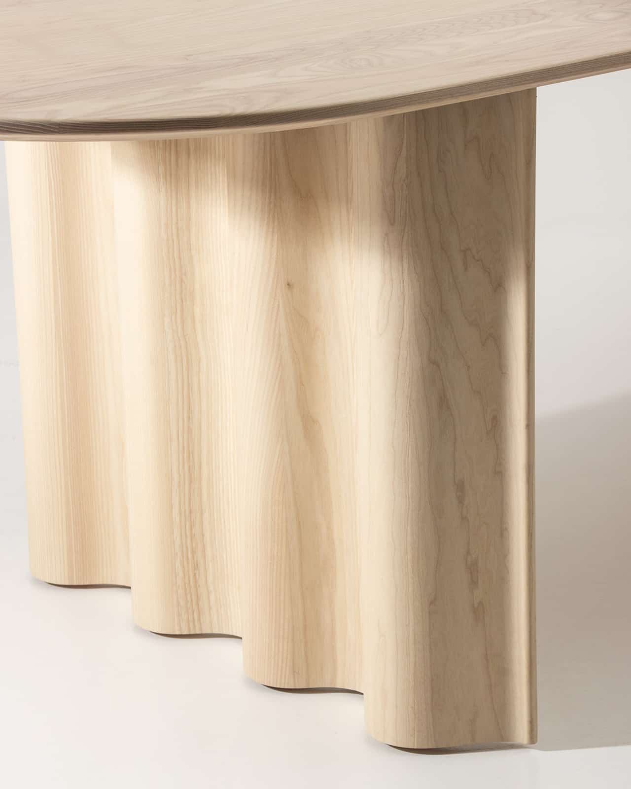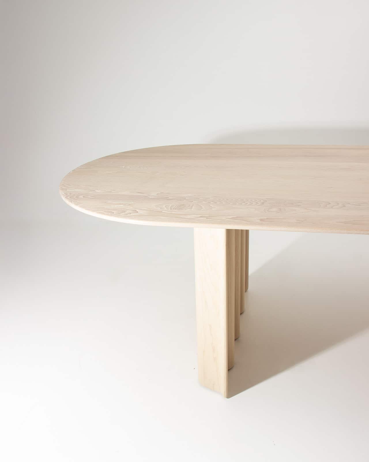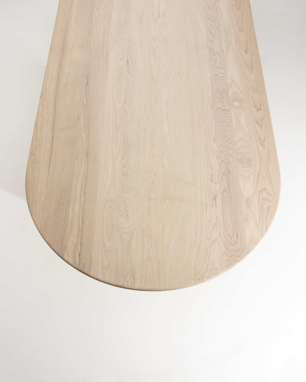 Massivholz Esche weiß geölt | Tischplattenform mit Halbkreis | wellenförmiges Gestell