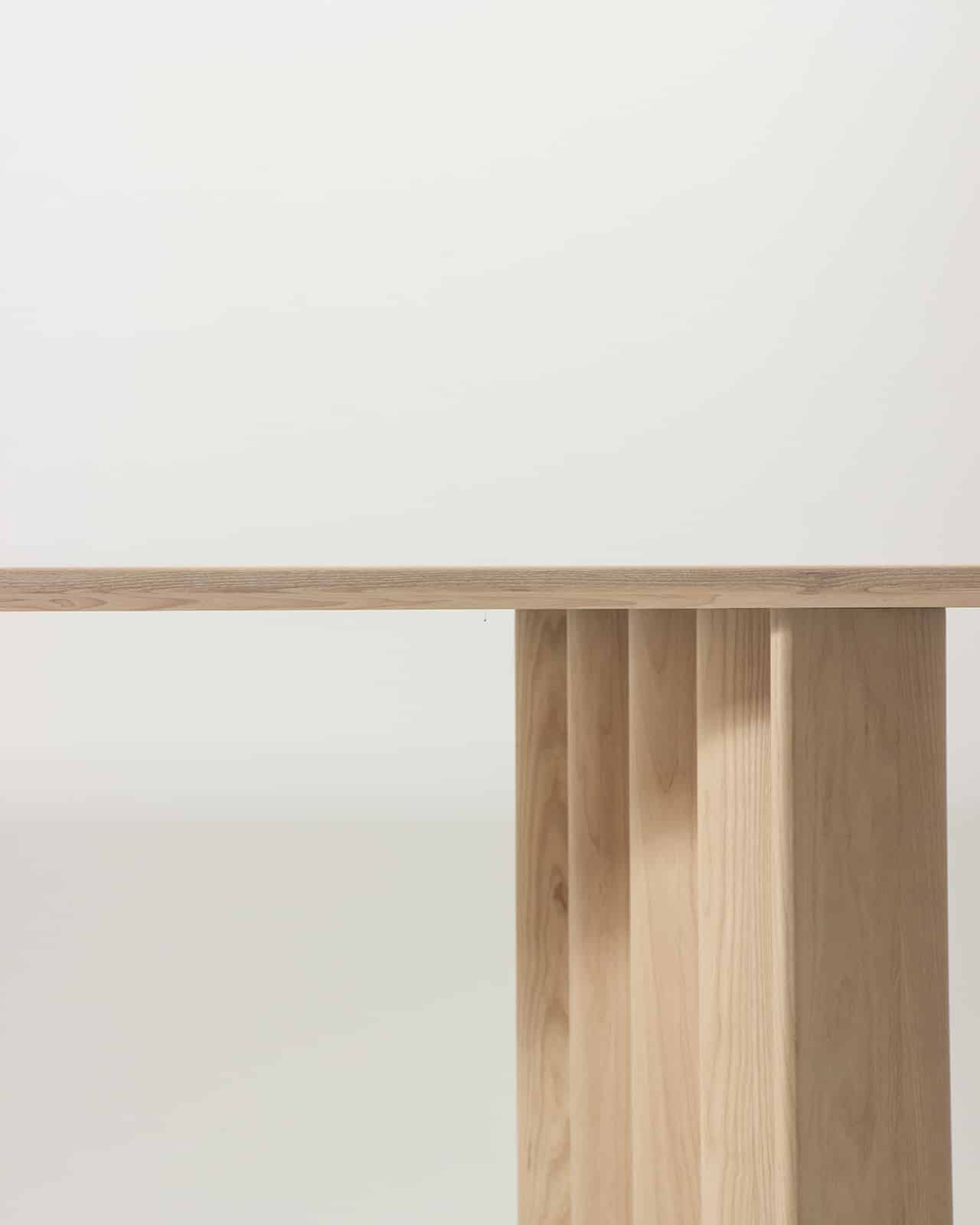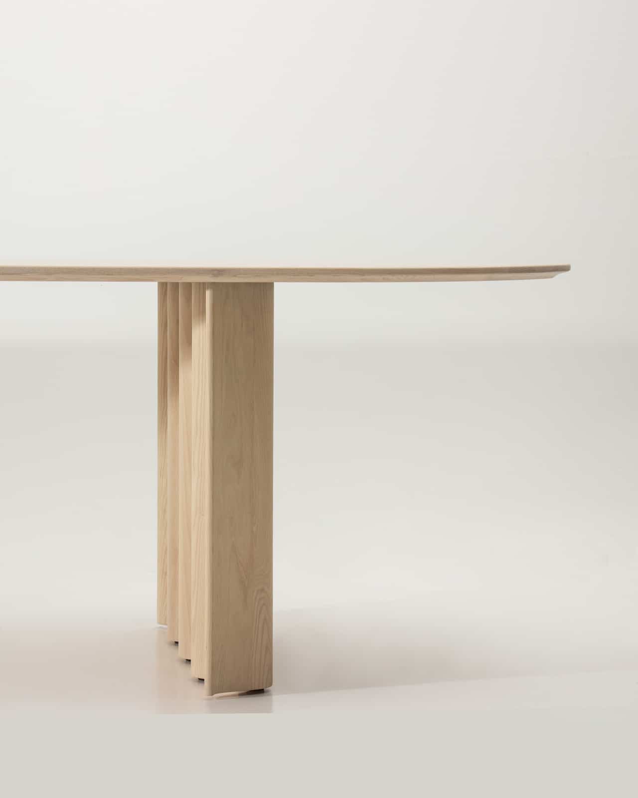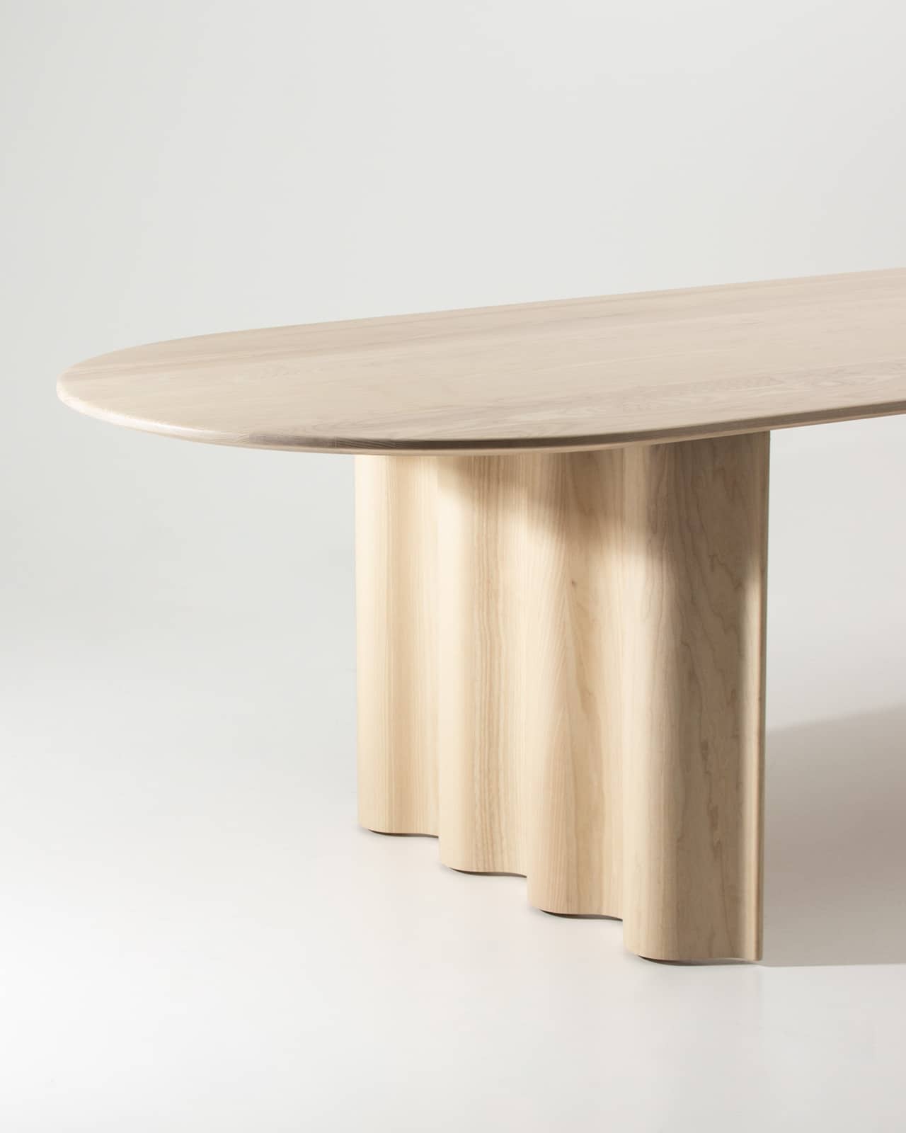 Massivholz Esche weiß geölt | Tischplattenform mit Halbkreis | wellenförmiges Gestell
