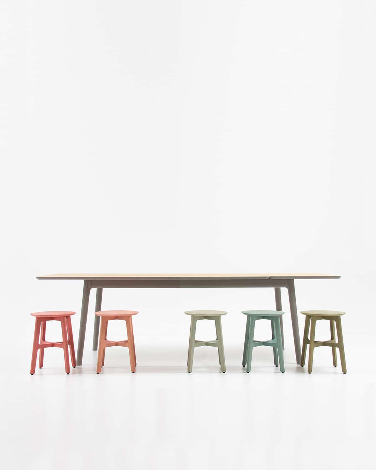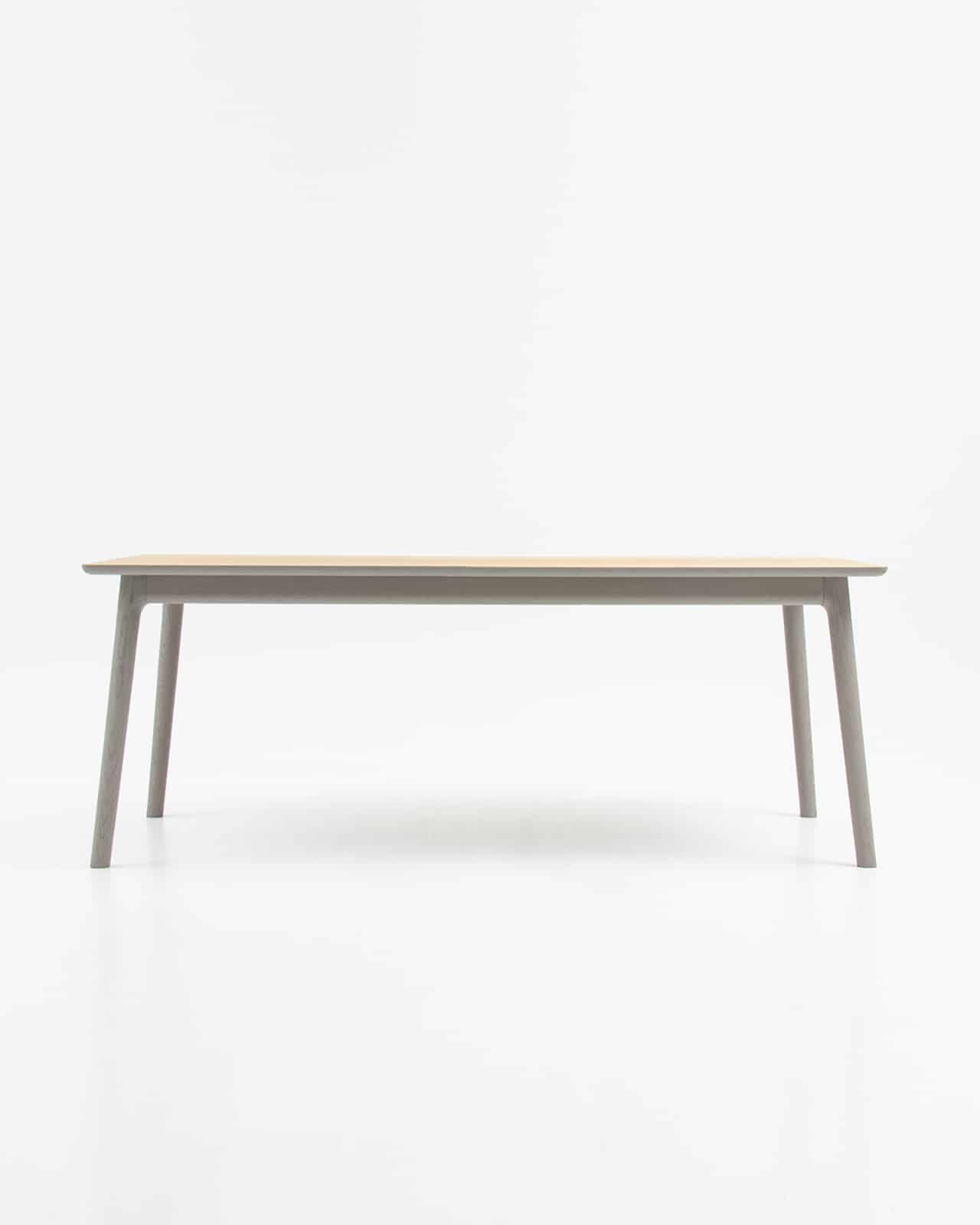E8 LONGUE – Modell für den Entwurf stand ein alter, zusammengebastelter Tisch aus den 40er Jahren. Dieser diente dem Designer Mathias Hahn in seinem Londoner Studio lange als Arbeitstisch. Durch die Länge des Tisches war es gleichzeitig möglich an einem Ende zu arbeiten und am anderen Ende zu speisen. Hahn übersetze dieses Vorbild in eine reduzierte, moderne Formensprache. Der Tisch ist die Symbiose aus edel, verspieltem Designobjekt und täglich genutztem Gebrauchsgegenstand mit vielfältigen Nutzungsmöglichkeiten. Hier in der Variante als ausziehbarer Tisch.