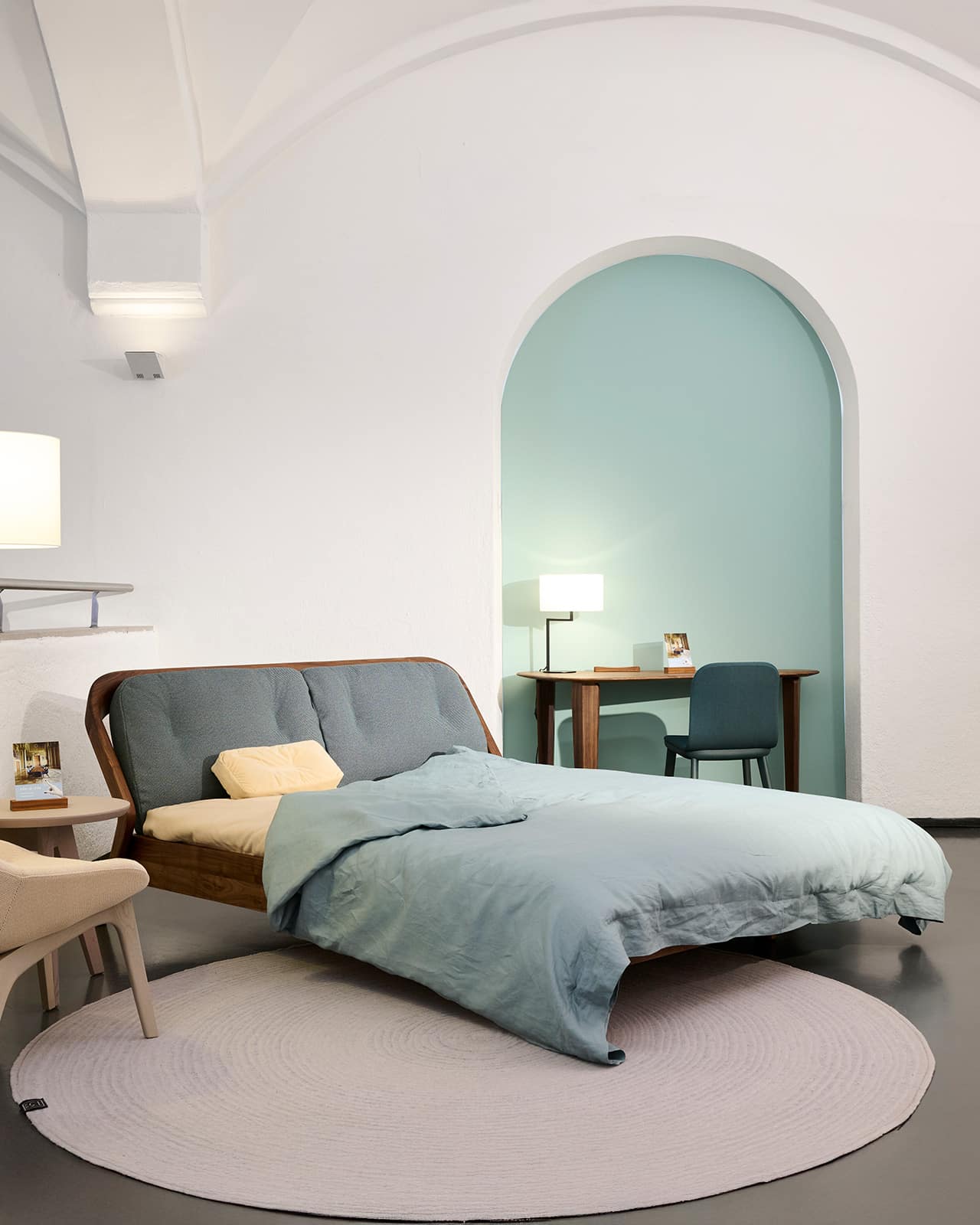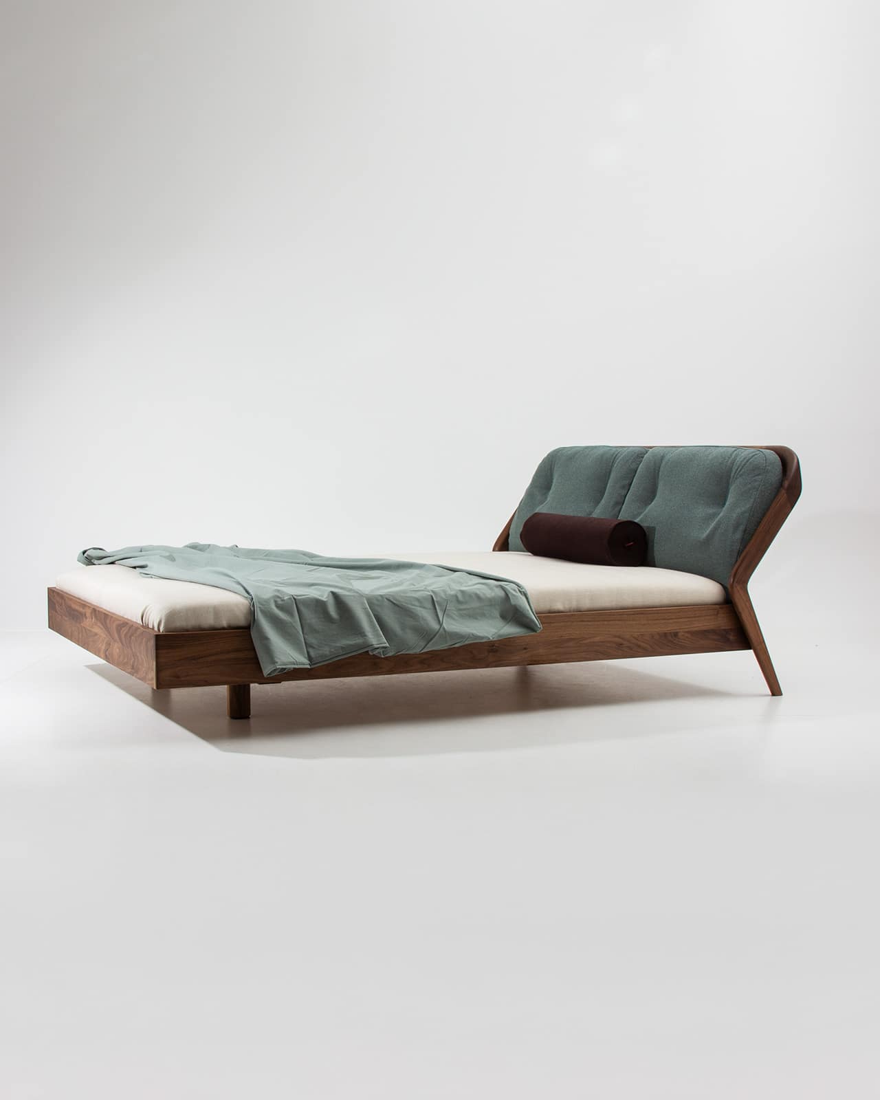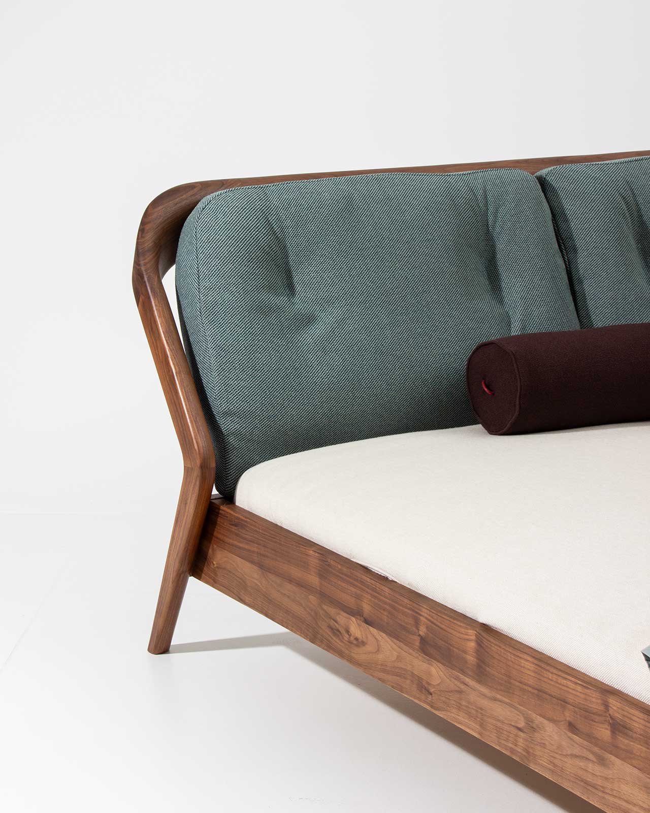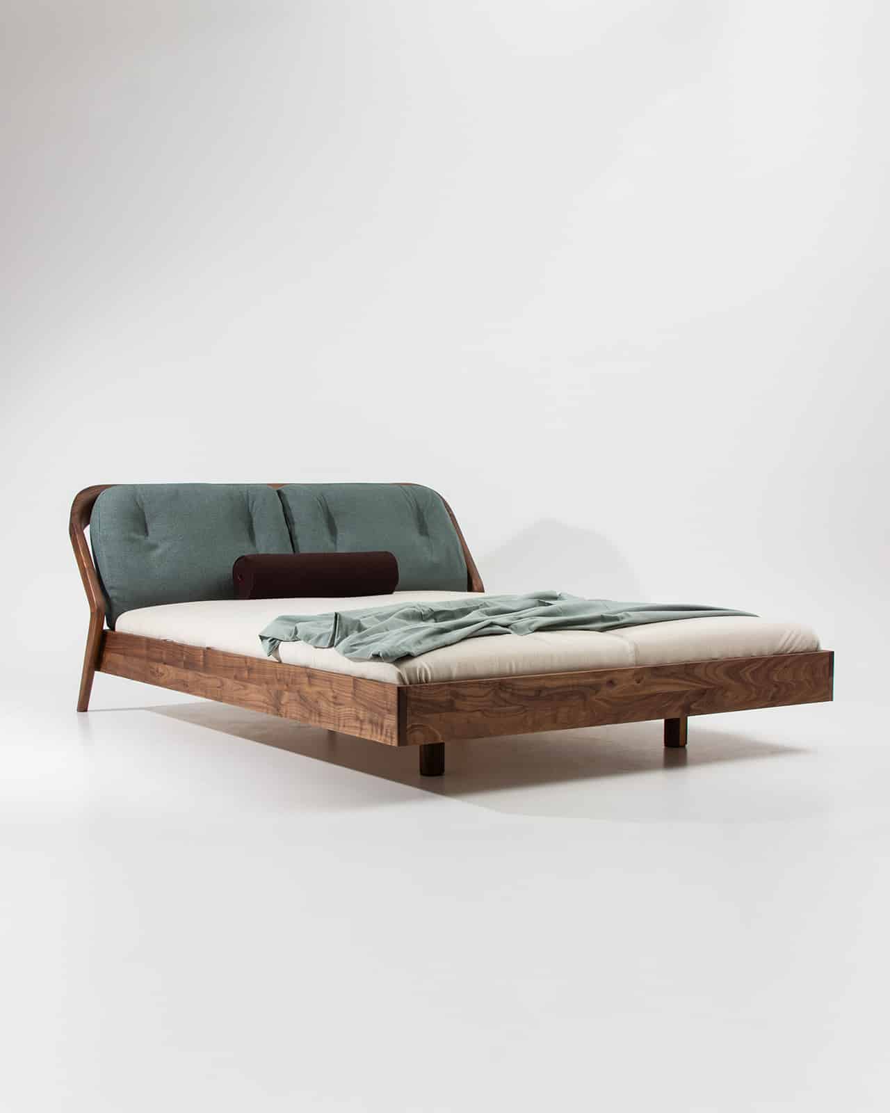 Massivholz amerikanischer Nussbaum | Polster Textil, Rohi Onda thymian | Dekoration, Matratze und Lattenrost SILENT sind nicht im Lieferumfang enthalten
