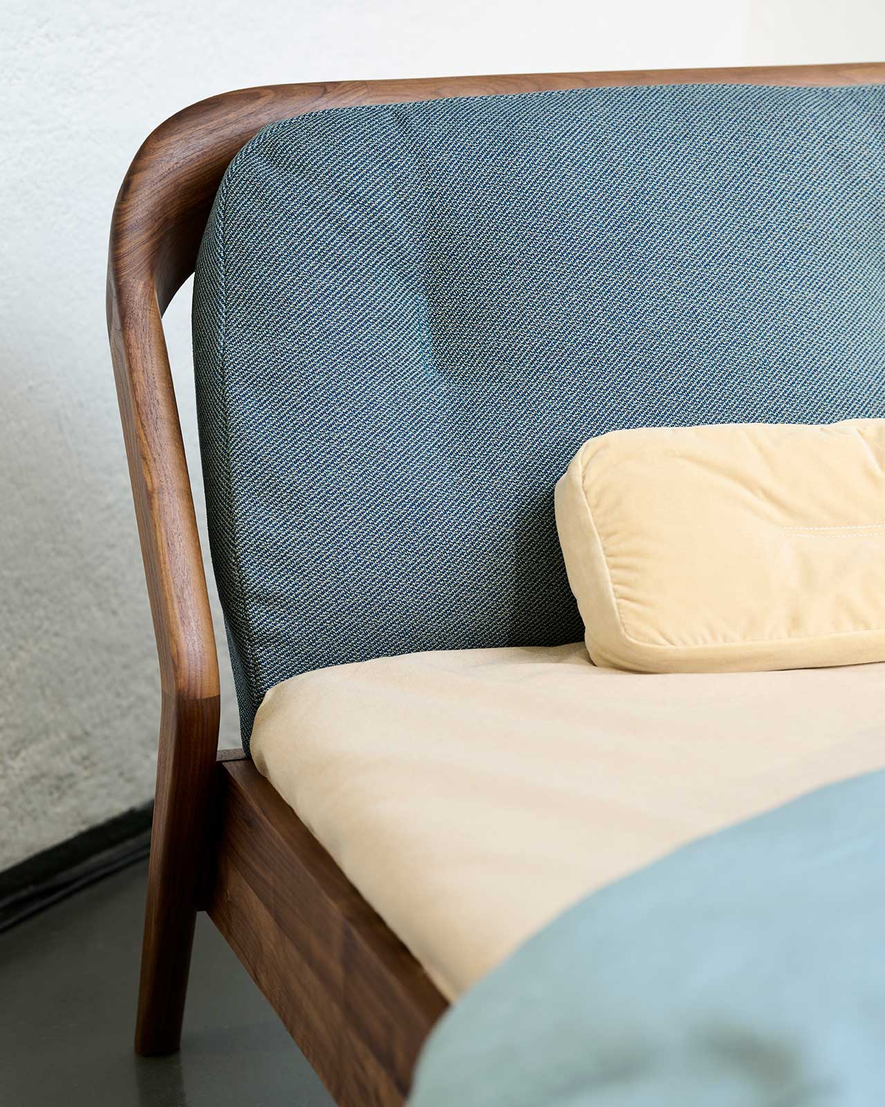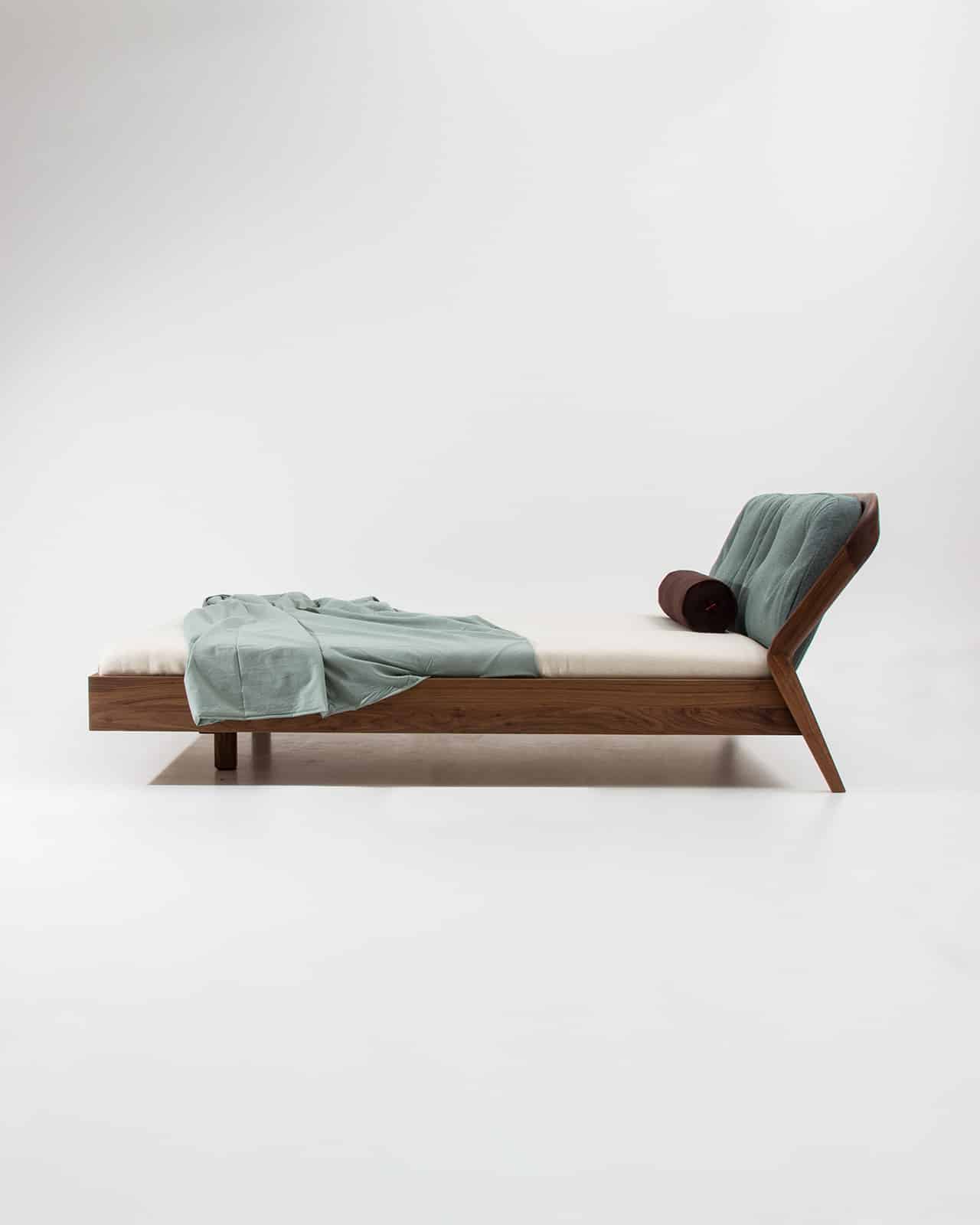 FRIDAY NIGHT erweitert die Friday Familie um ein Bett. Es ist ebenso elegant und komfortabel, wie die Loungesesessel und das Sofa. Besonders macht das Bett die amorphe Form des Kopfteils. In einem sanften Bogen schwingt sich die hölzerne Rückenlehne hinunter zum Boden und wird zum soliden Fuß. Mit der Kombination aus Holz und edlen Stoffen der Rückenkissen, bringt FRIDAY NIGHT die Gemütlichkeit von Polstermöbeln in das Schlafzimmer. Es ist eben nicht nur Bett, sondern auch Sofa, Kinosessel, Frühstücks-Lounge und Ruheinsel. Beste Voraussetzungen sich gelassen dem Friday Night Fever hinzugeben.