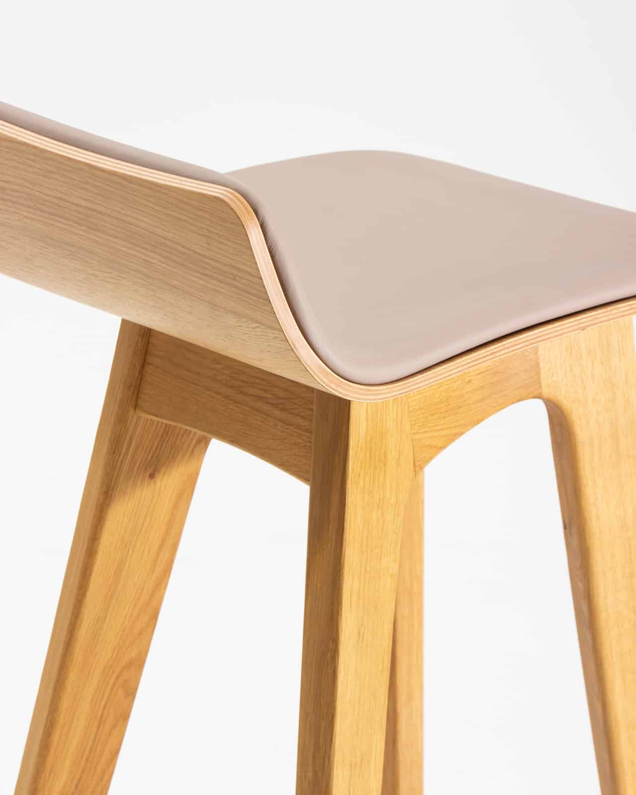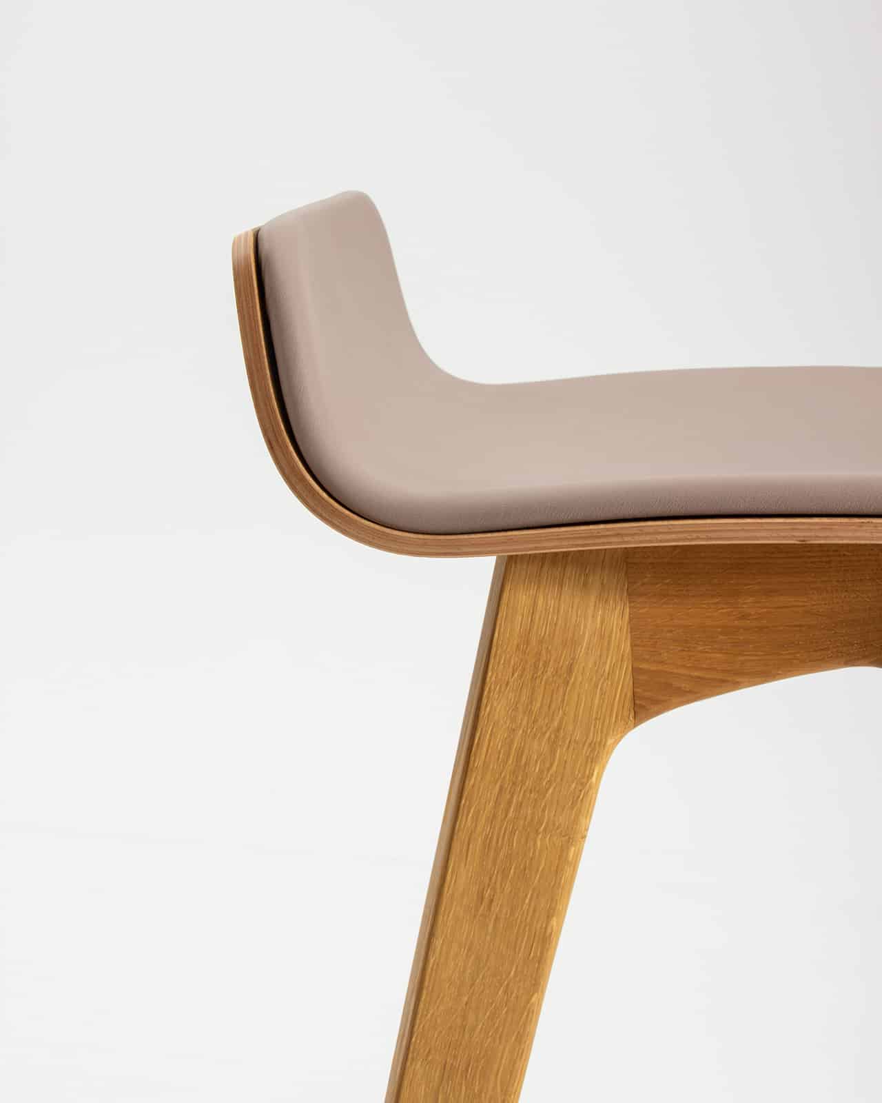 Gestell Massivholz Eiche | Schale Formholz Eiche furniert | aufliegendes Sitzpolster Leder Elmotique 12036