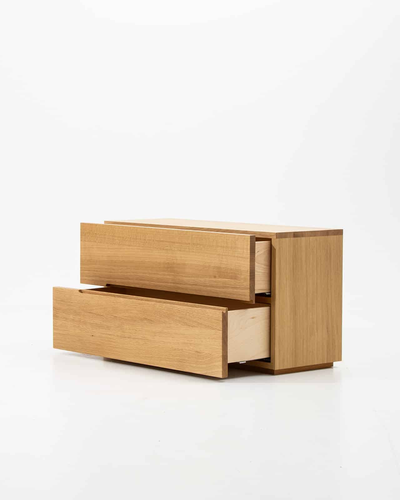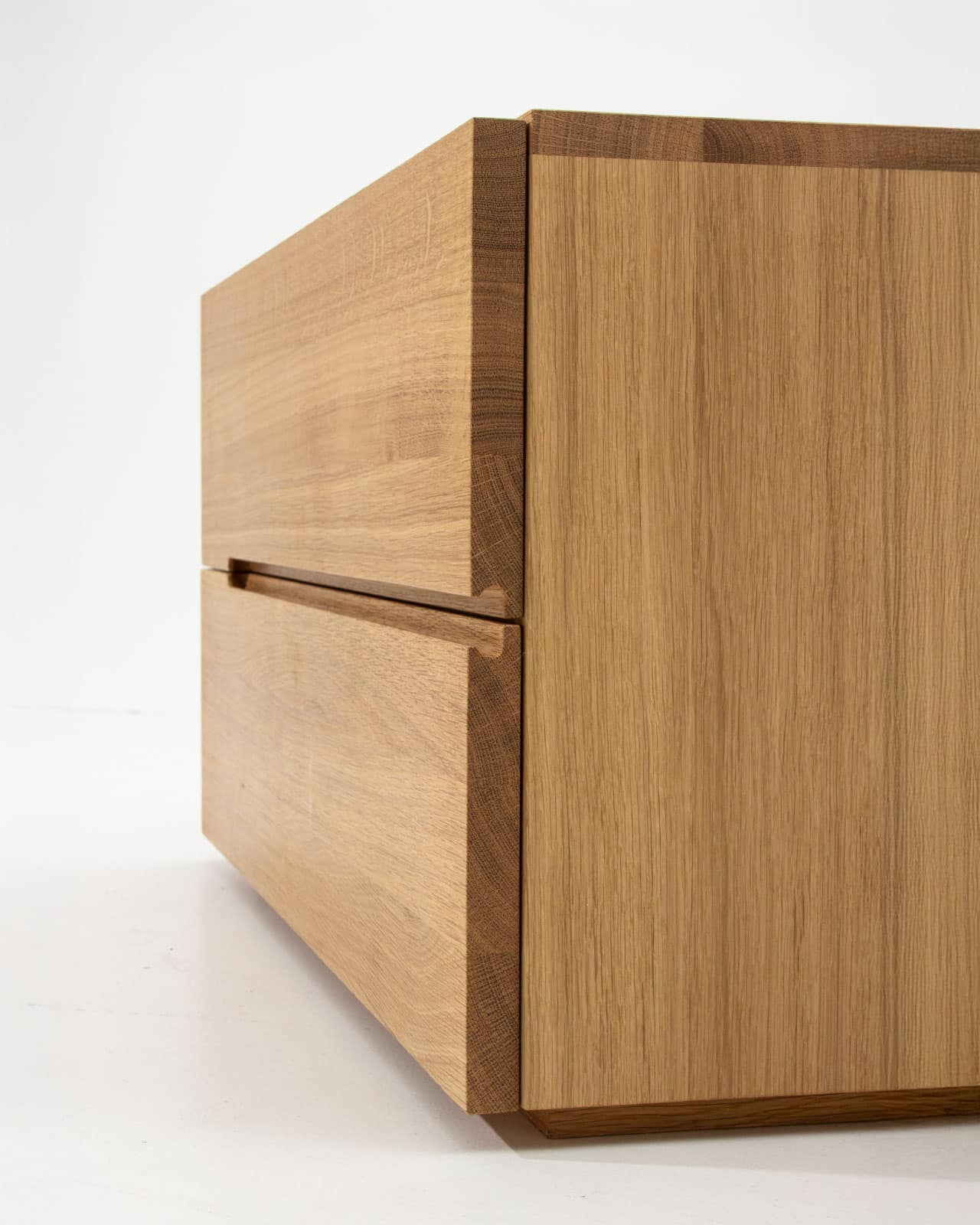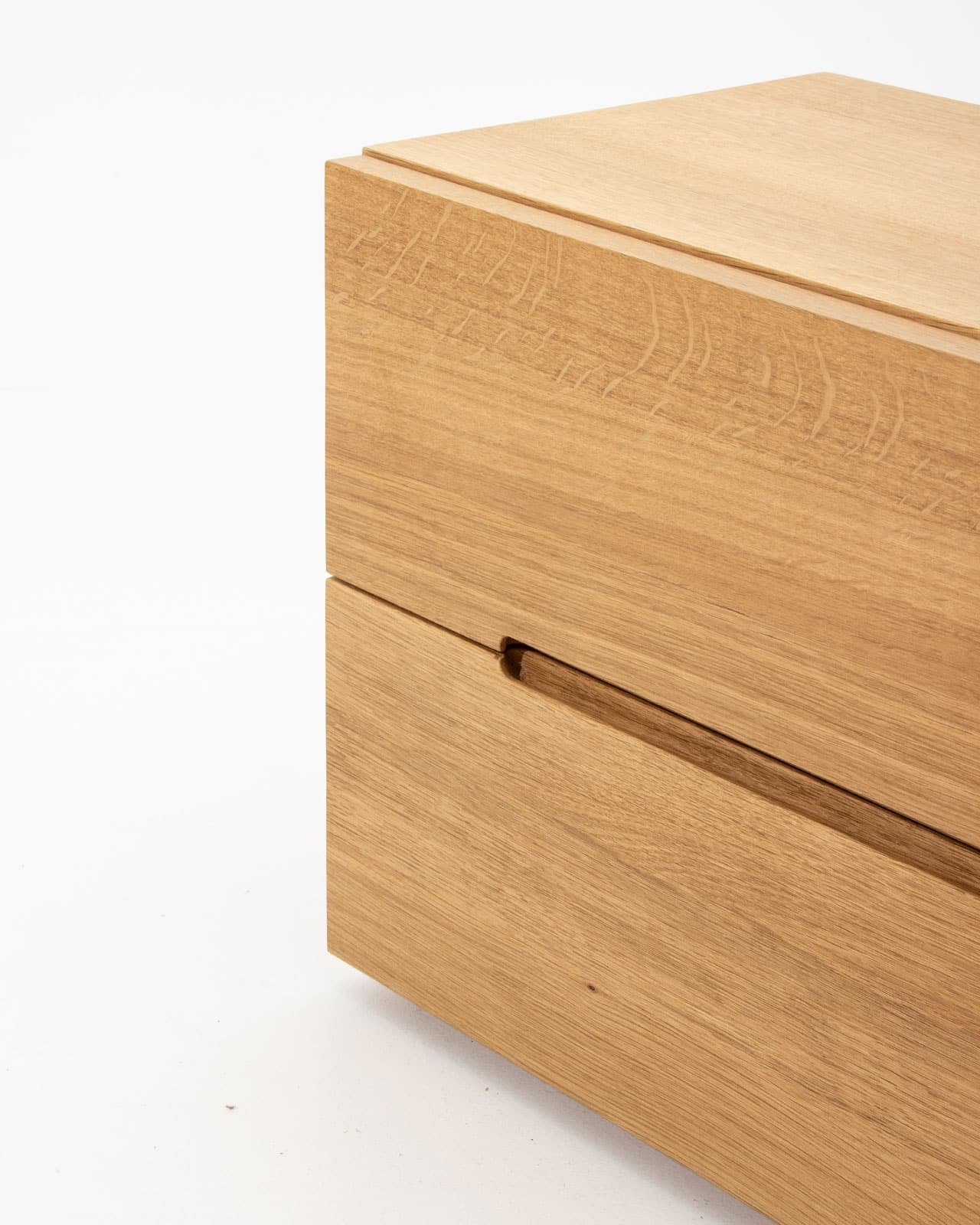 Massivholz Eiche | zwei Schübe mit Teilauszug, innen Weißbuche massiv, gezinkt und lackiert | für die linke Bettseite