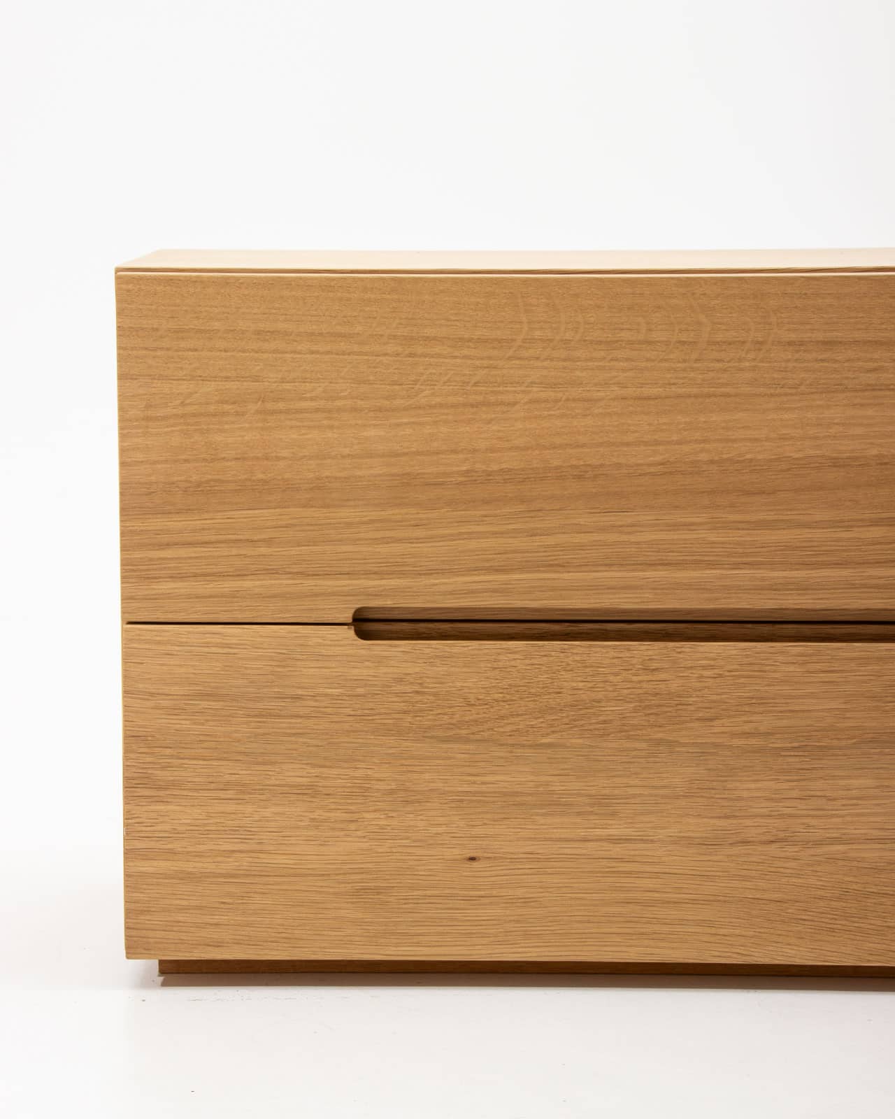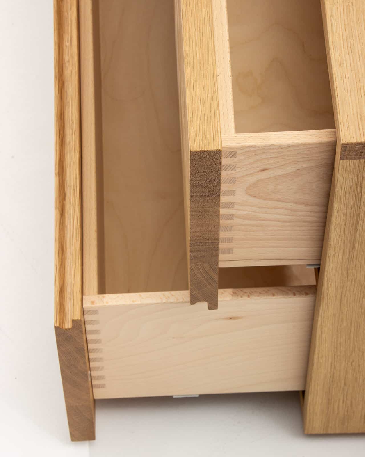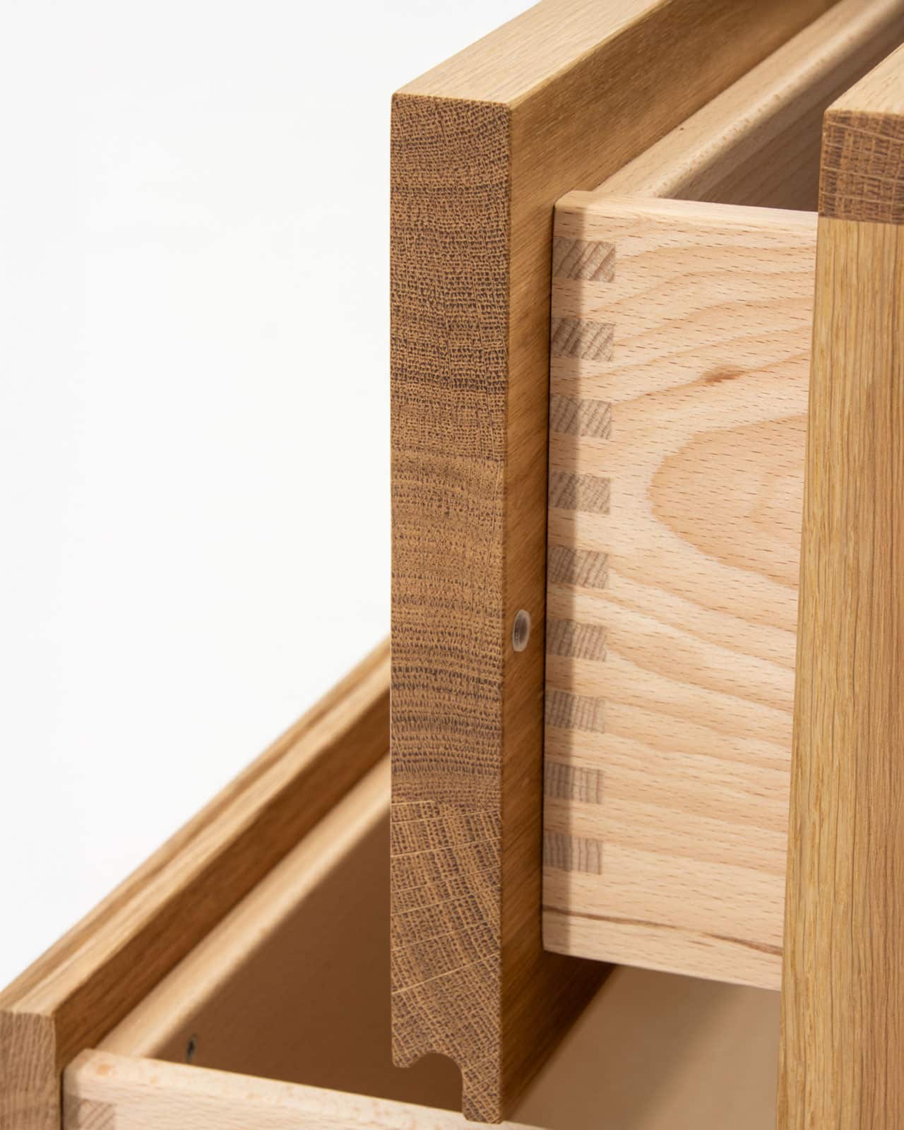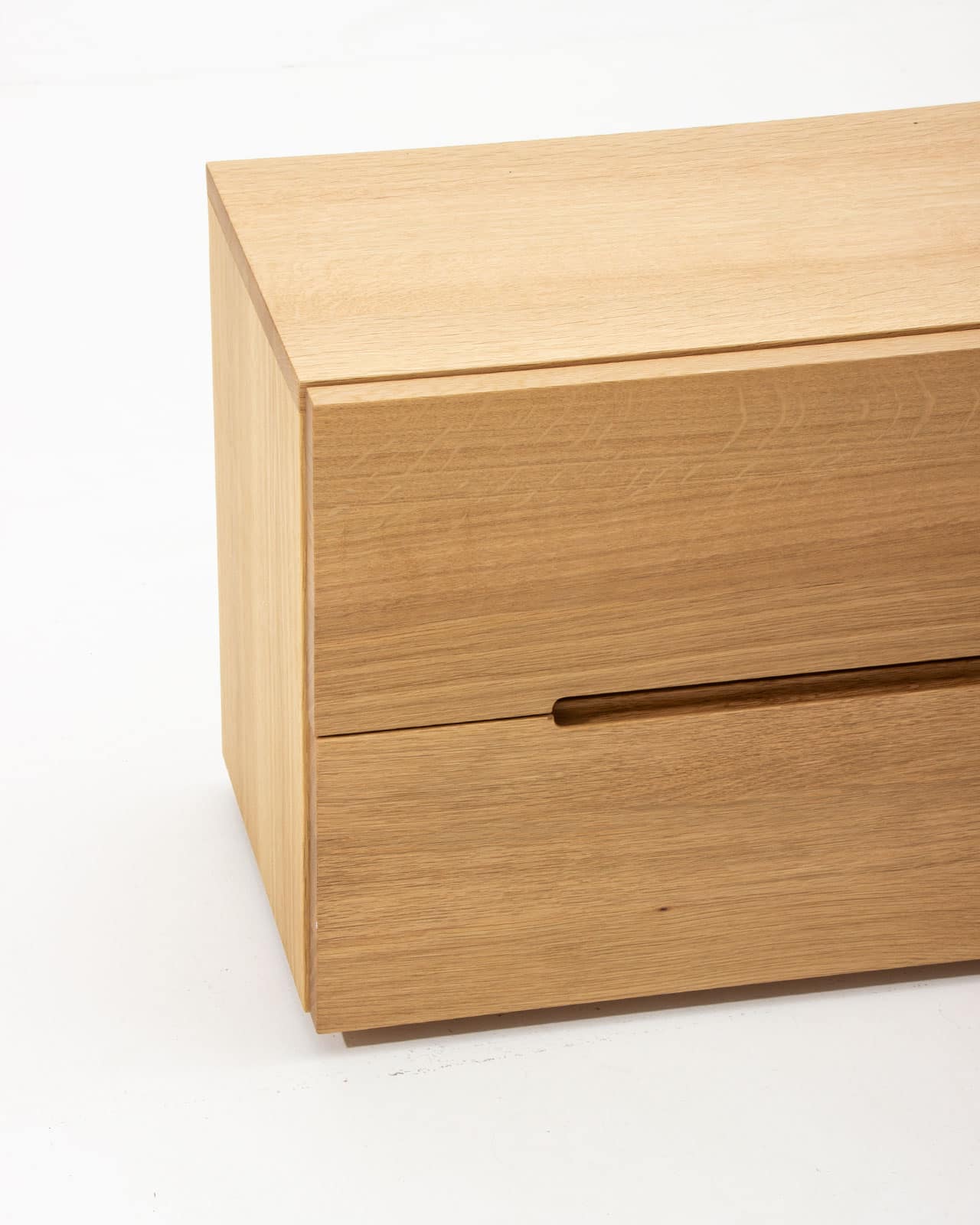Massivholz Eiche | zwei Schübe mit Teilauszug, innen Weißbuche massiv, gezinkt und lackiert | für die linke Bettseite