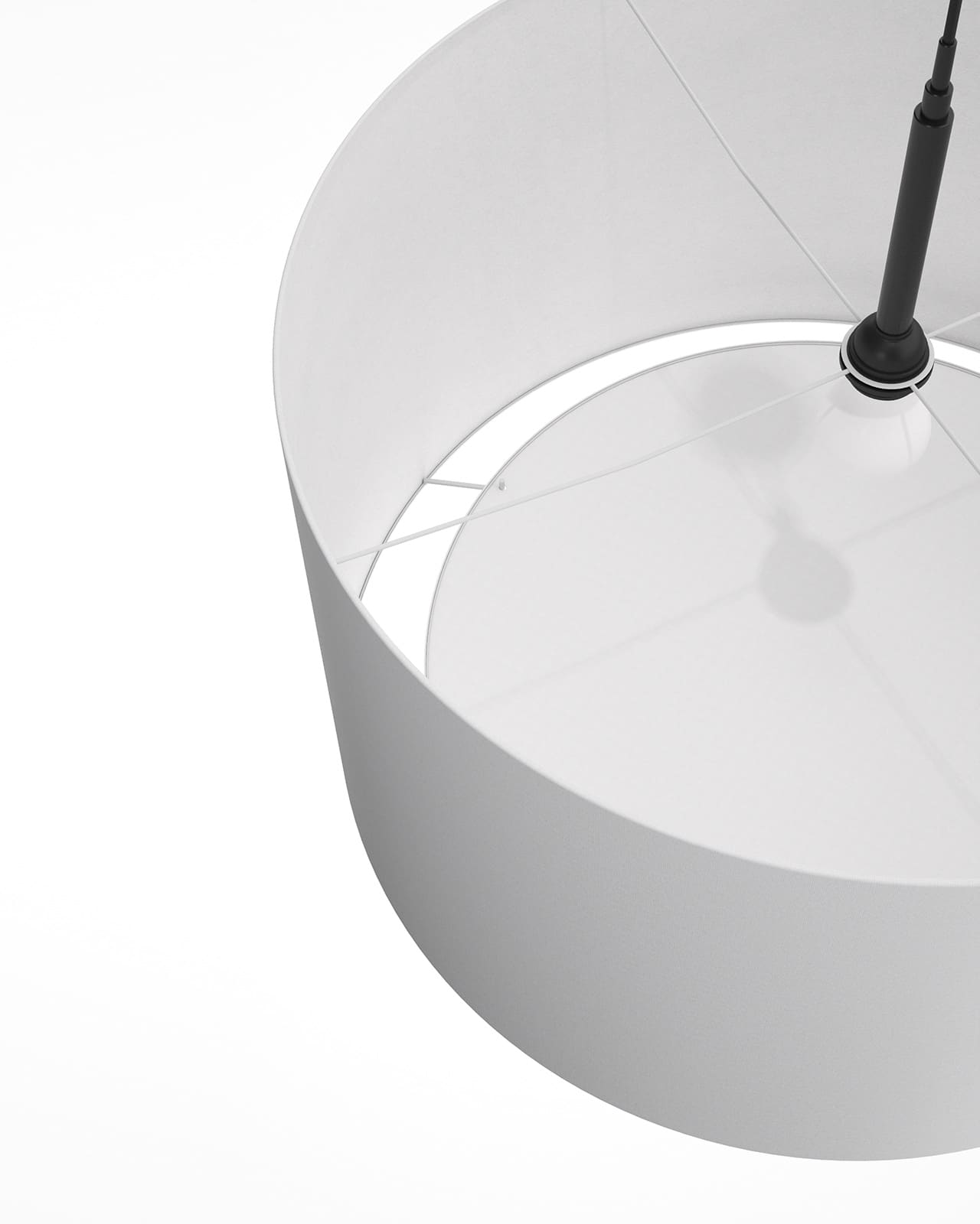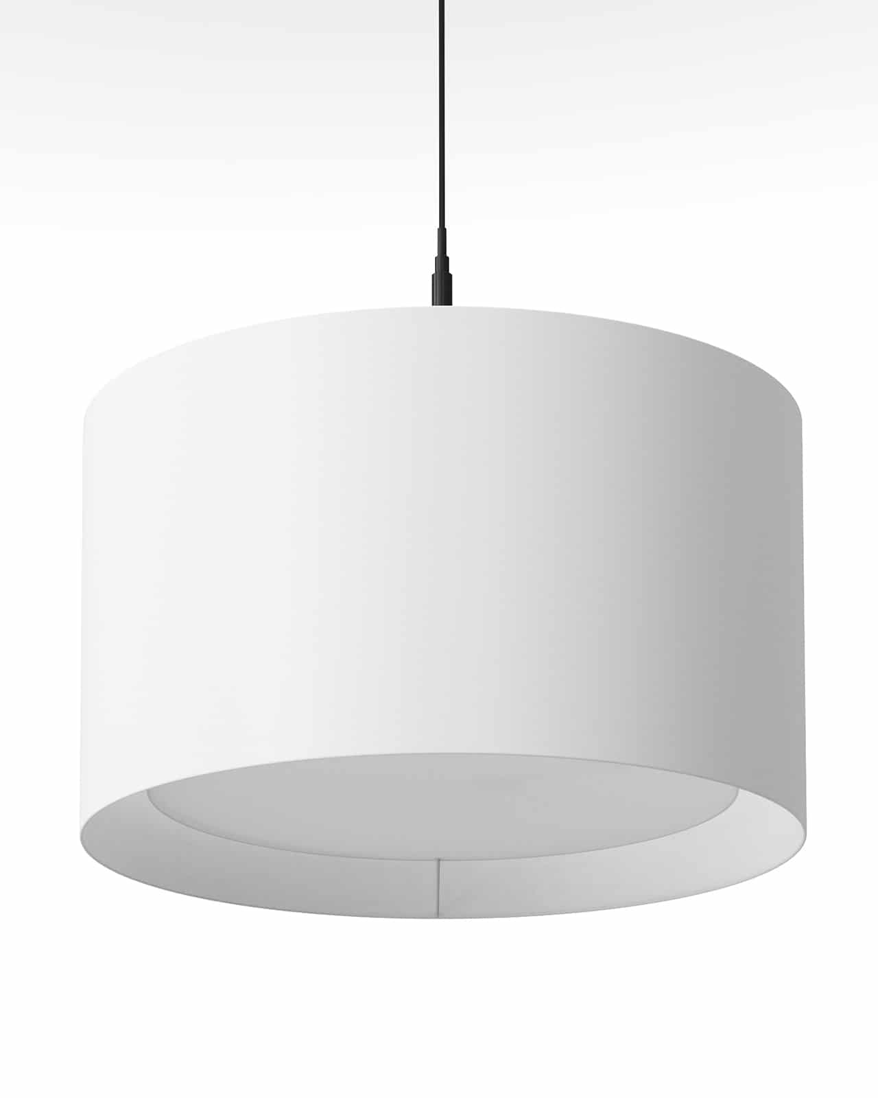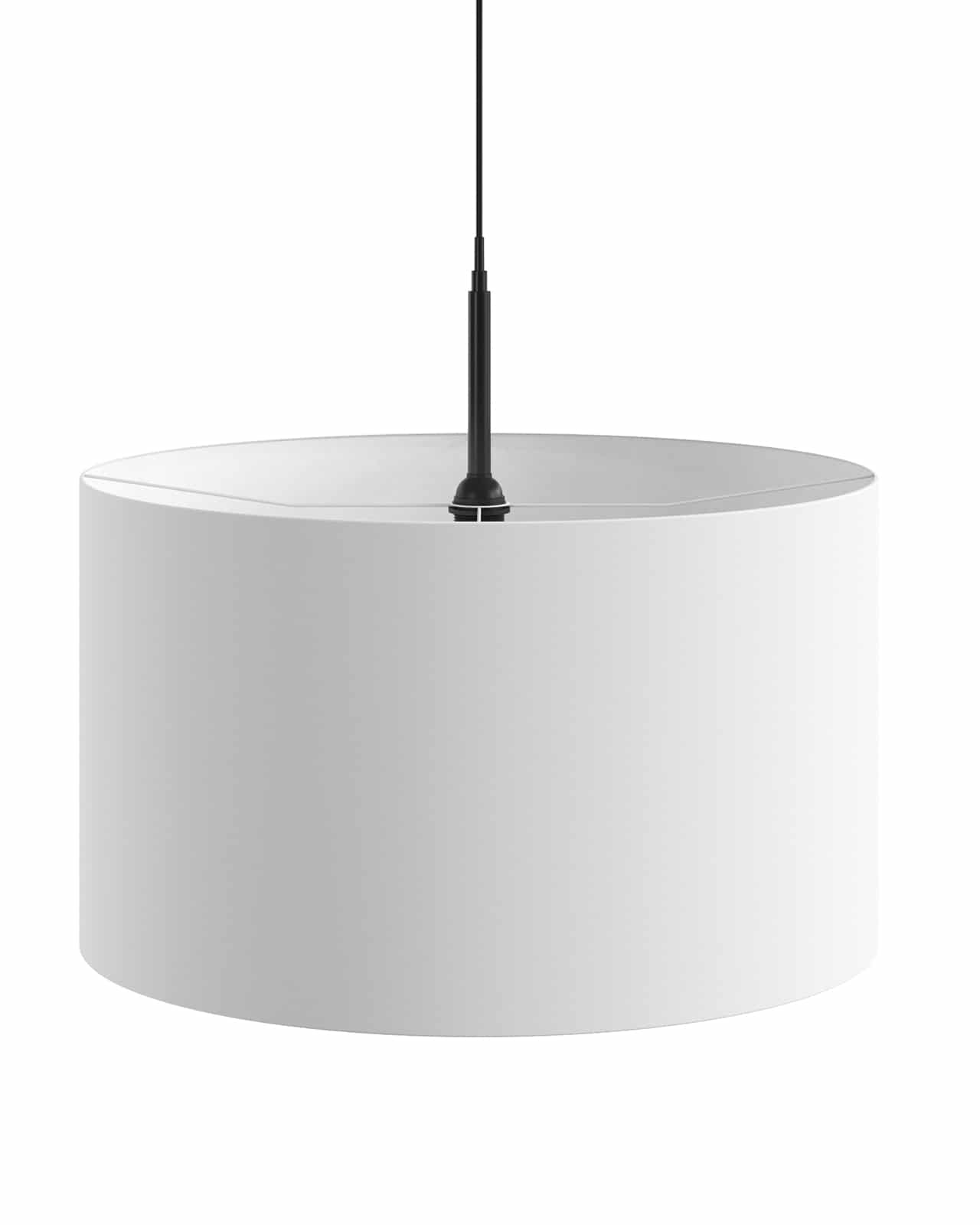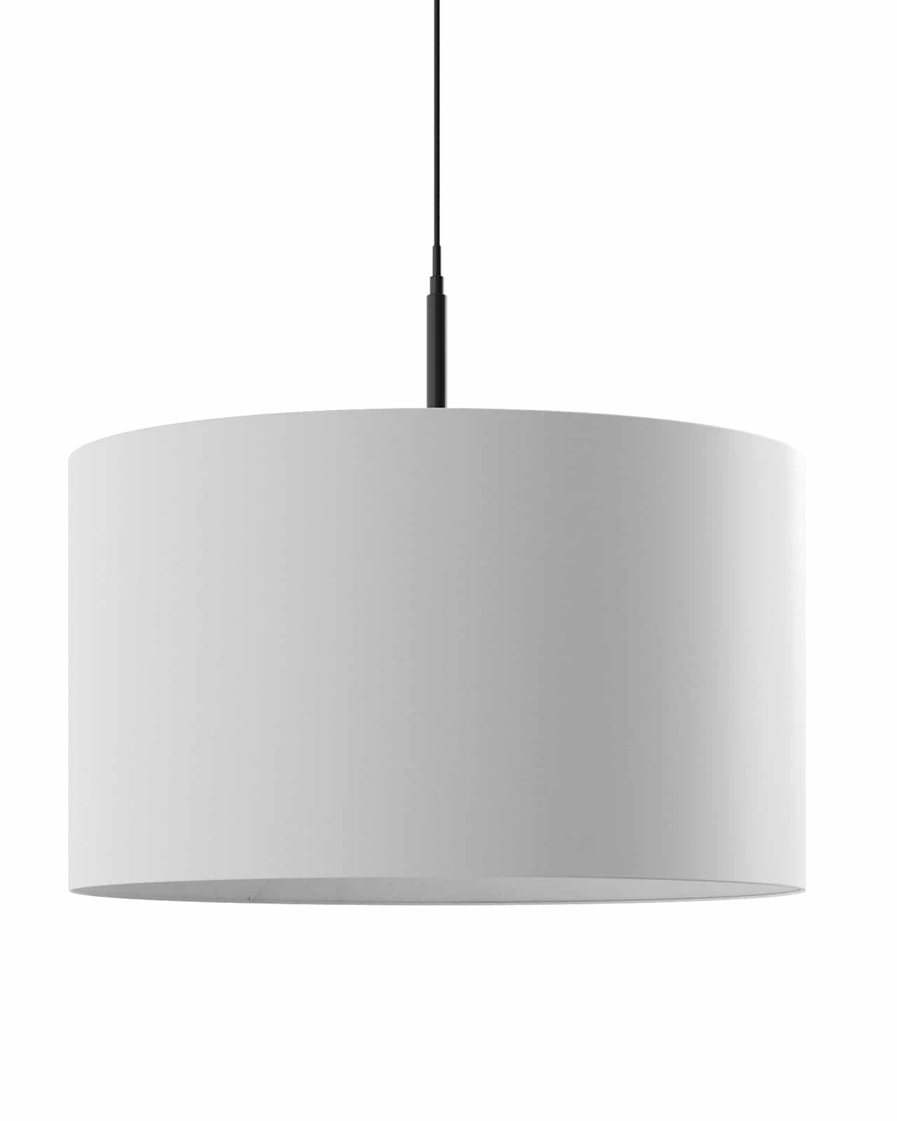 Schirm Textil weiß | Pendel und Baldachin mattschwarz pulverbeschichtet | Textilkabel | Abverkauf von Restbeständen
