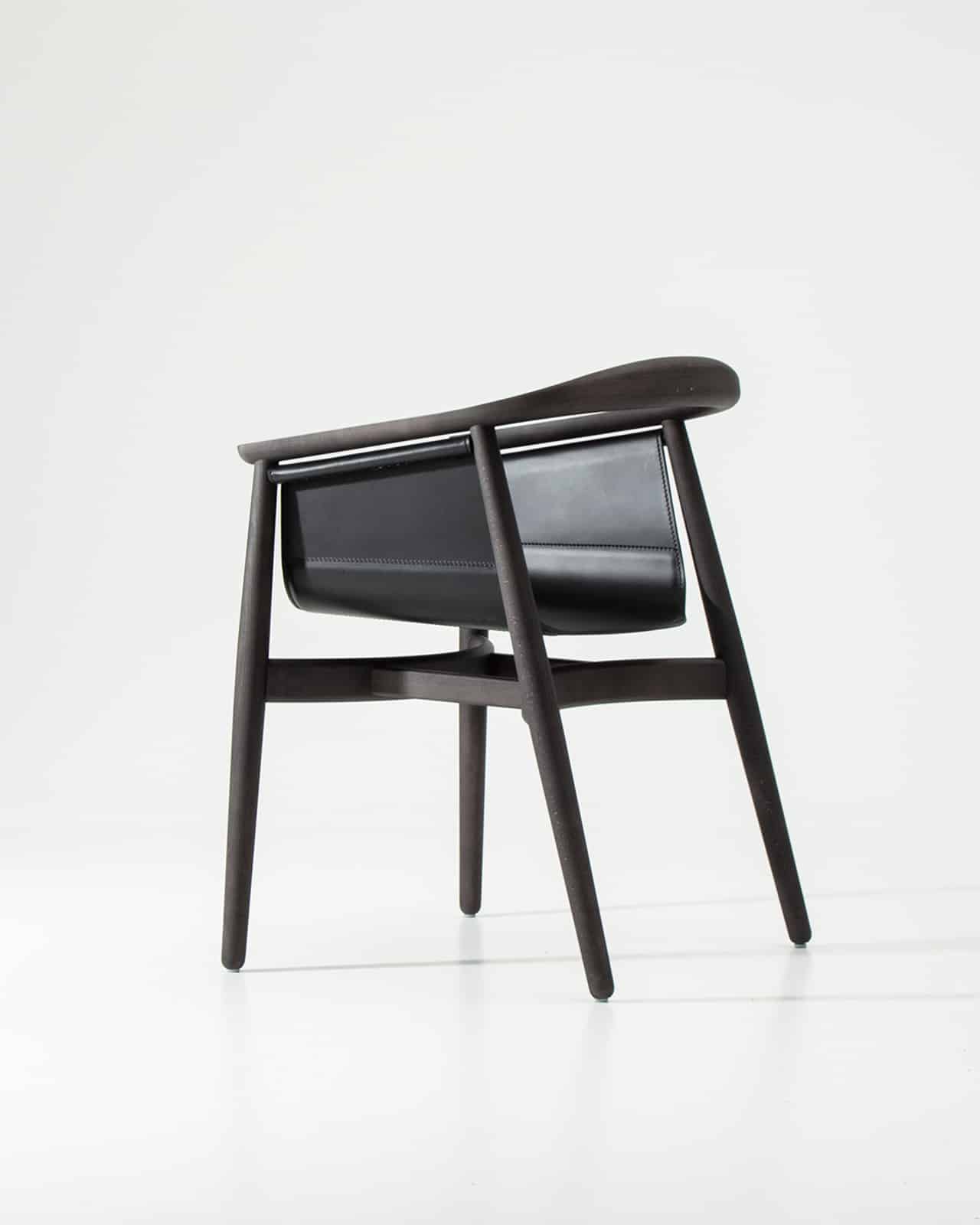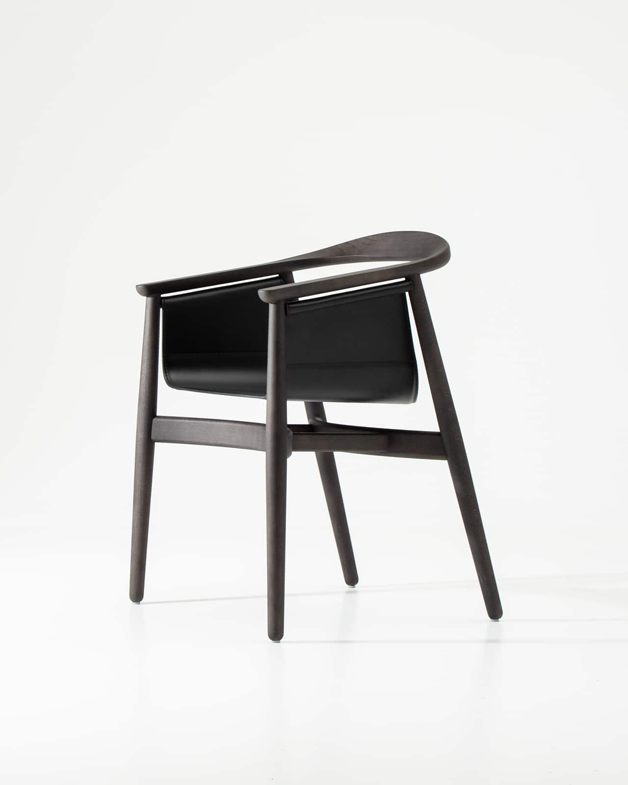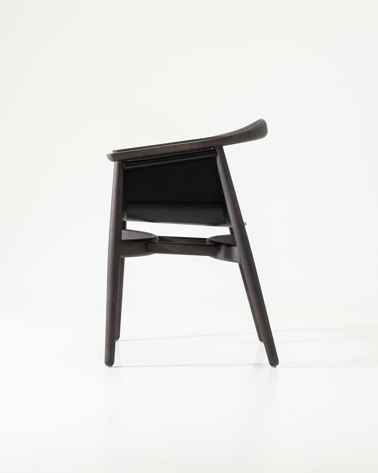 PELLE wirkt edel und großzügig, seine halbrunde Rücken- und Armlehne zitiert die Formensprache skandinavischer Klassiker. Das Besondere an PELLE ist sein frei hängender Sitz. Er wird von einer Rundstrebe gehalten, die unterhalb der Lehne verläuft. Wie aufgewickelt hält das Rundholz den Sitz aus Kernleder. PELLE eignet sich als Solitär am Schreibtisch und in der Gruppe um den Tisch.