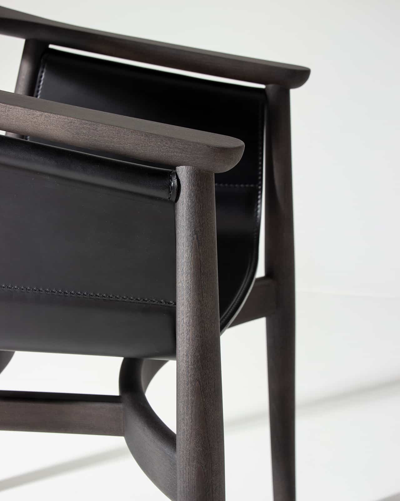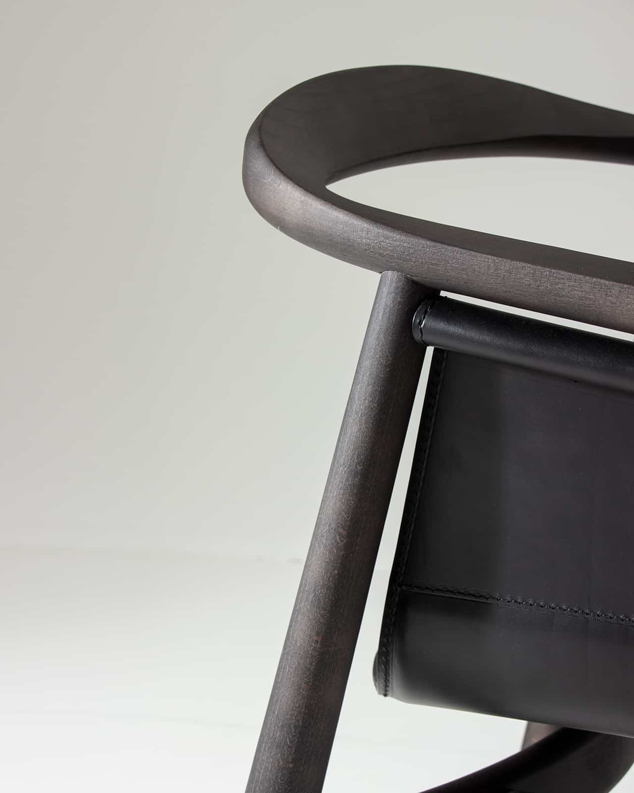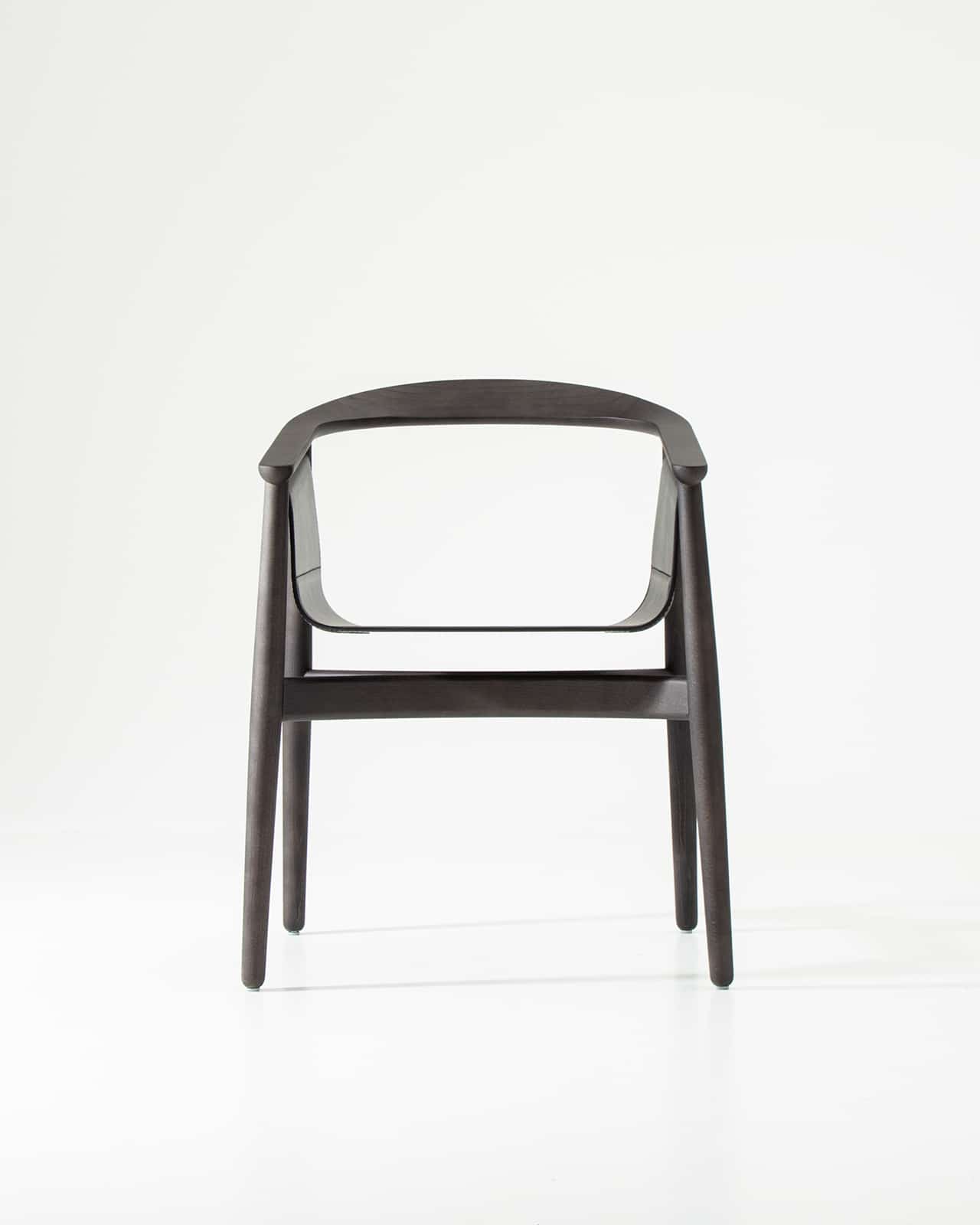 PELLE wirkt edel und großzügig, seine halbrunde Rücken- und Armlehne zitiert die Formensprache skandinavischer Klassiker. Das Besondere an PELLE ist sein frei hängender Sitz. Er wird von einer Rundstrebe gehalten, die unterhalb der Lehne verläuft. Wie aufgewickelt hält das Rundholz den Sitz aus Kernleder. PELLE eignet sich als Solitär am Schreibtisch und in der Gruppe um den Tisch.