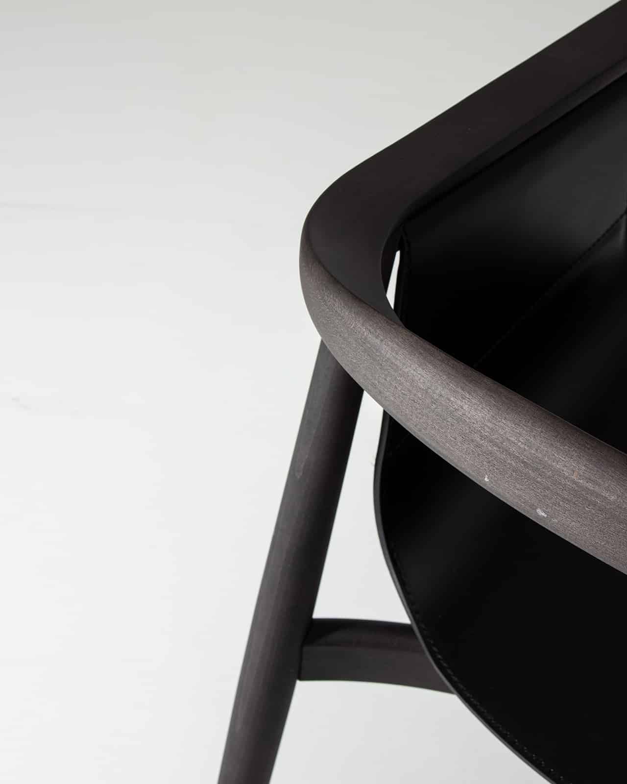 Massivholz Buche| Farbbeize graphitschwarz | Sitzpolster Kernleder schwarz