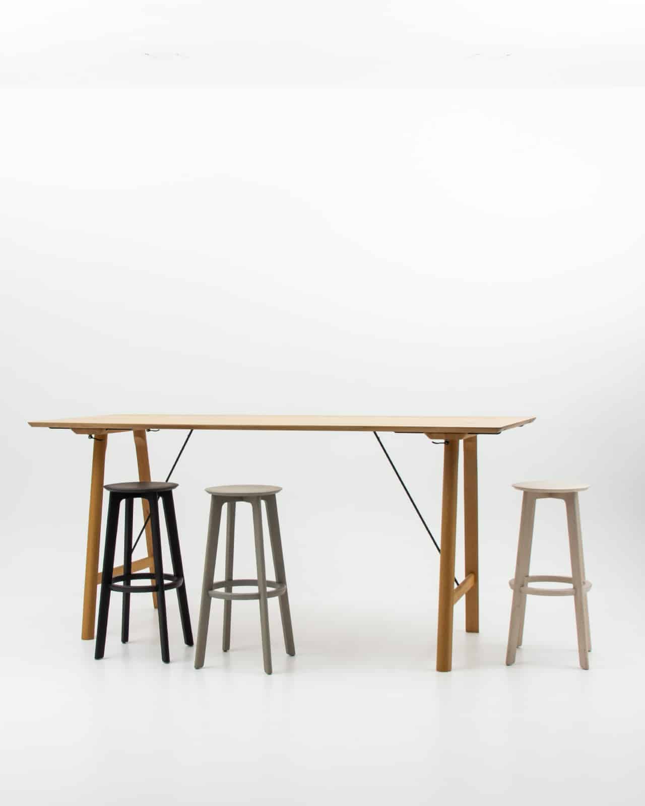 RAIL ist als unendlich erweiterbares Baukastensystem für kleine und sehr große Büros, Studios oder Agenturen entwickelt. Die atelierartige Anmutung von RAIL lässt sich jedoch auch in den Wohnbereich übertragen. So wird der kleine Tisch mit nur ein paar Handgriffen zur festlichen Tafel. RAIL basiert auf einer patentierten Verbindung, die es ermöglicht die Böcke beliebig zu verschieben. Es reicht also ein Bock aus um den Tisch durch eine Ansatzplatte zu erweitern. Fixiert wird das Ganze durch ein raffiniertes Schnellspannsystem.