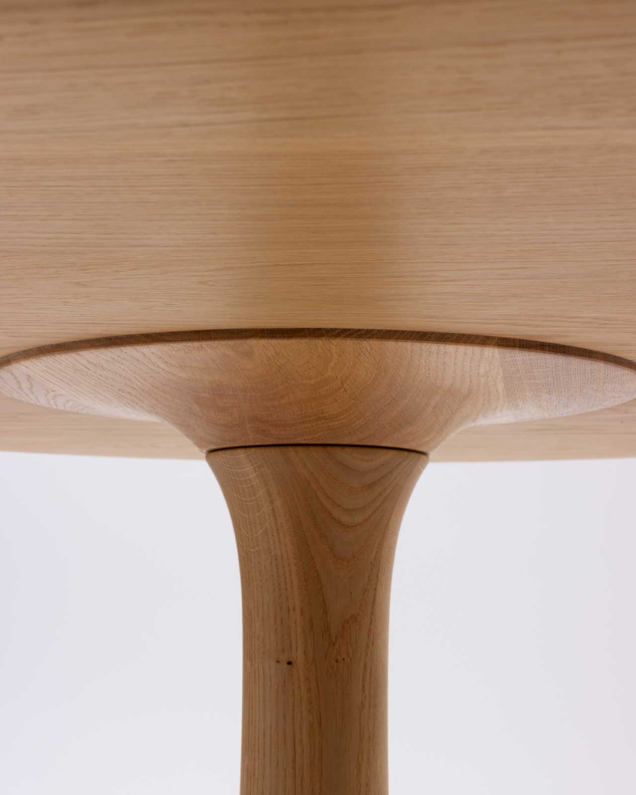 Wenn der Fuß dieses Tisches aus einem Stück Massivholz gedrechselt wird, dann sind sogar wir noch jedes Mal begeistert von der Handwerkskunst unserer Schreiner. Das Ergebnis ist nicht nur ein sehr aufwendig produzierter und hochwertiger Tisch, sondern auch ein sehr elegantes und doch stabiles Designobjekt. Den runden TURNTABLE gibt es als Esstisch und als stilsicheren Beistelltisch. Und weil uns das noch nicht genug war, sind wir noch einen Schritt weiter gegangen und haben mit dem TURNTABLE OVAL eine noch größere und handwerklich noch anspruchsvollere Variante realisiert. Ob als Tafel oder als Konferenztisch: in der Ausführung aus Massivholz ist dieser Tisch einzigartig.