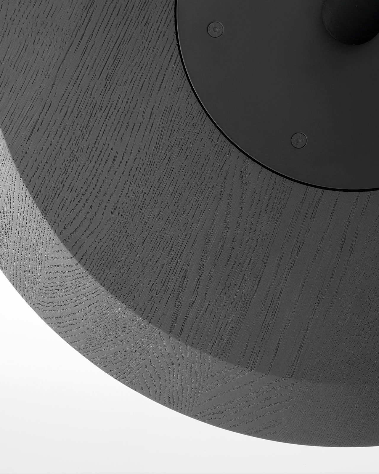 Massivholz Eiche | Farbbeize graphitschwarz | Fuß aus Stahl | Pulverbeschichtung mattschwarz
