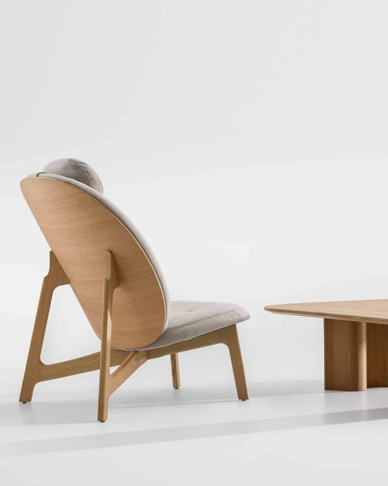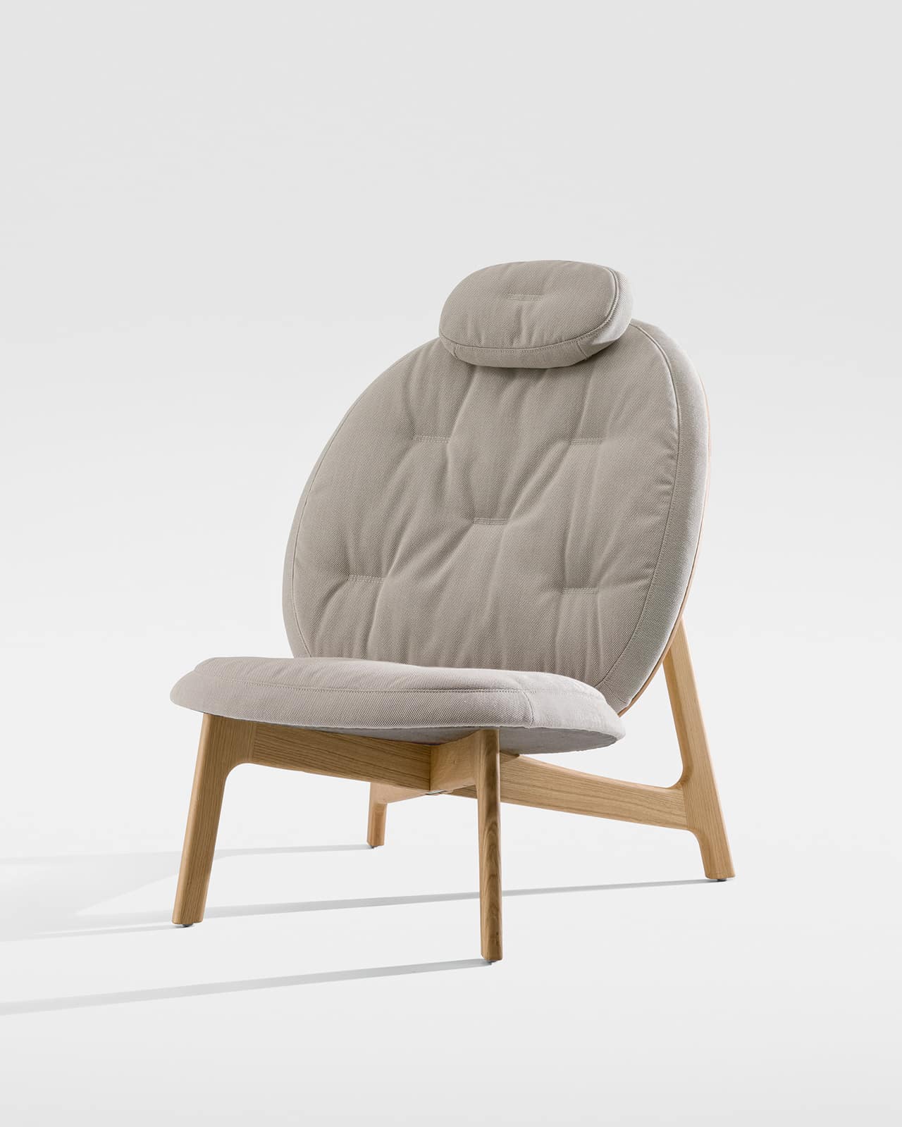 Mit dem Lounger ZENSO HIGH + POUF wird die ZENSO Stuhlfamilie um einem Hochlehner ergänzt. Das formale Grundmotiv des Enso-Kreises aus der japanischen Kalligrafie wurde hier weitergespielt. Die Form des Rückens spiegelt das in einer überhöhten, kreisförmigen Freiform wider. Diese ausdrucksstarke Geste lässt den Lounger skulptural erscheinen und ist zugleich eine Aufforderung, es sich gemütlich zu machen – die Füße hochlegen auf ZENSO POUF. Das prägnante Kreuzholzgestell stützt und trägt die ausladende Rückenschale. Das justierbare Kopfkissen kann individuell auf die jeweilige Größe eingerichtet werden. Der Lounger zeichnet sich durch einen hohen Sitzkomfort aus.
