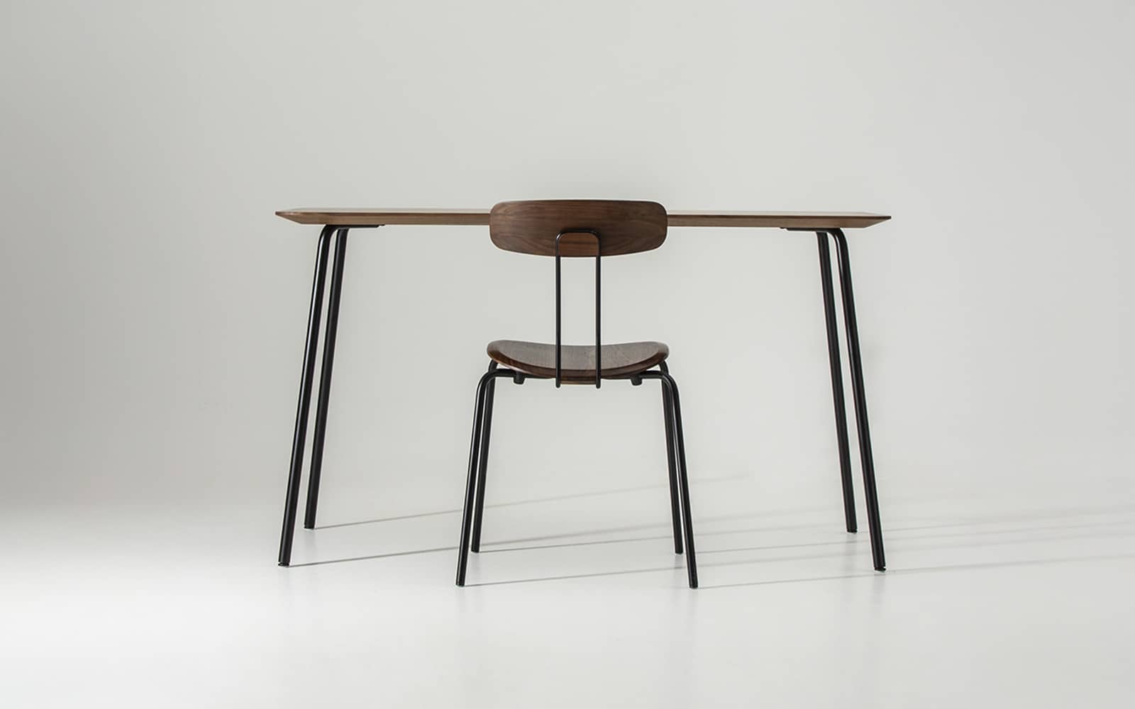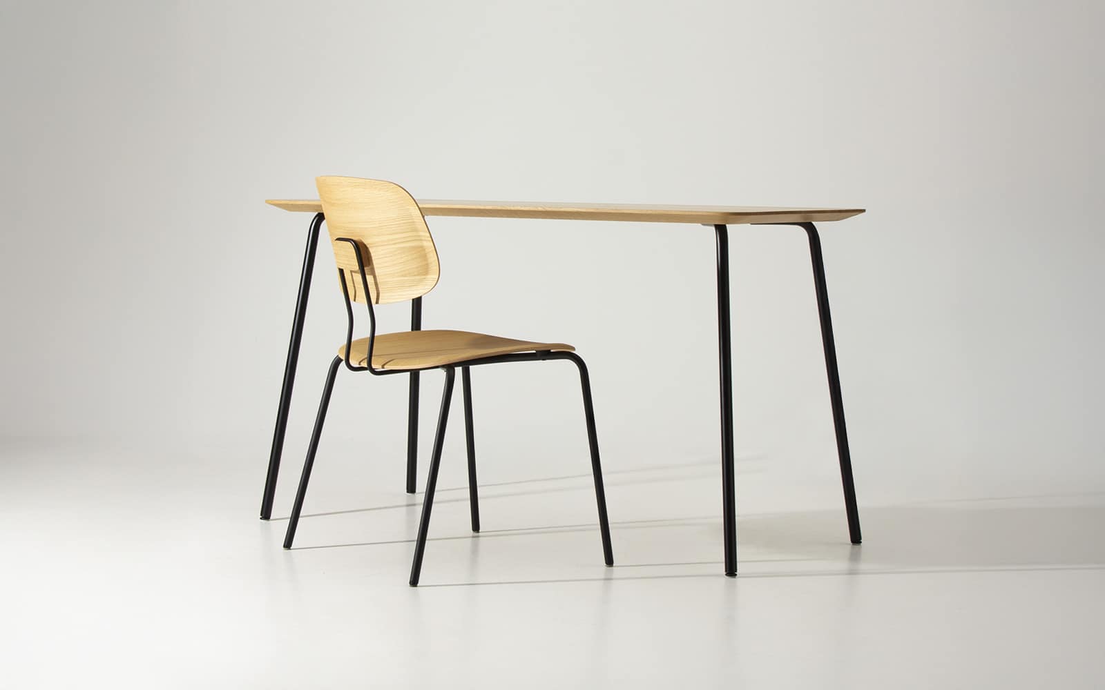 Massivholz Eiche | Farbbeize graphitschwarz | Gestell Stahlrohr | Pulverbeschichtung mattschwarz